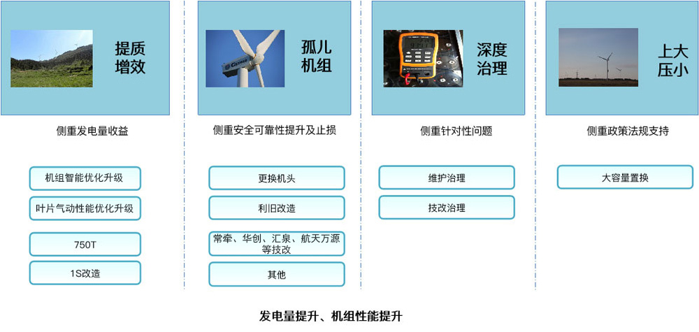 • 针对风电场不同时期、不同机型,金风慧能通过全面的检测和评估,为每一个风电场量身定制性能优化、发电量提升、延寿等全面技改方案,保护和持续优化客户的投资,提升资产价值